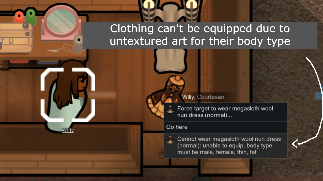 This is a user experience/bugfix mod for modlists with apparel mods that don't have textures available for all body types. This prevents a user from wearing apparel that is not textured for their body type.
