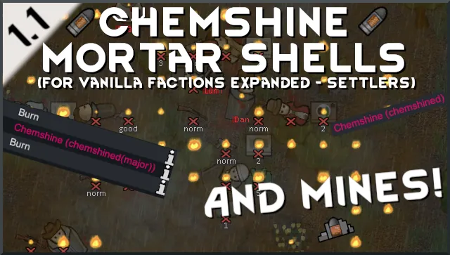 This mod in essence is quite simple, it is an addon to Gas Traps and Shells and Vanilla Factions Expanded - Settlers which gives you the ability to weaponize chemshine.