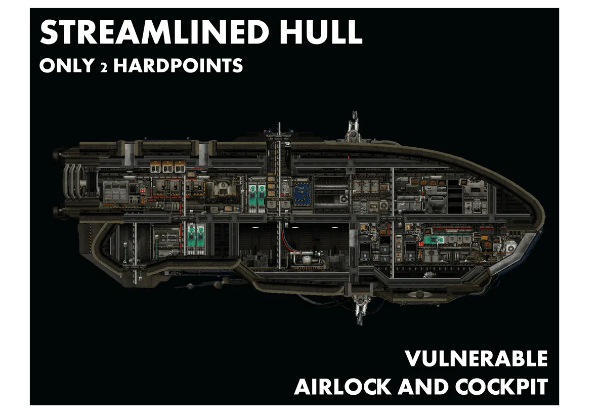 Armed with two weapon hardpoints, the Yarae can defend itself when needed, but it is not intended for prolonged engagements. Noticeable blind spots and the absence of auxiliary defences demand attentive piloting and coordinated crew response. Captains who rely on awareness and positioning will find it capable; those who expect heavy combat endurance will not.
