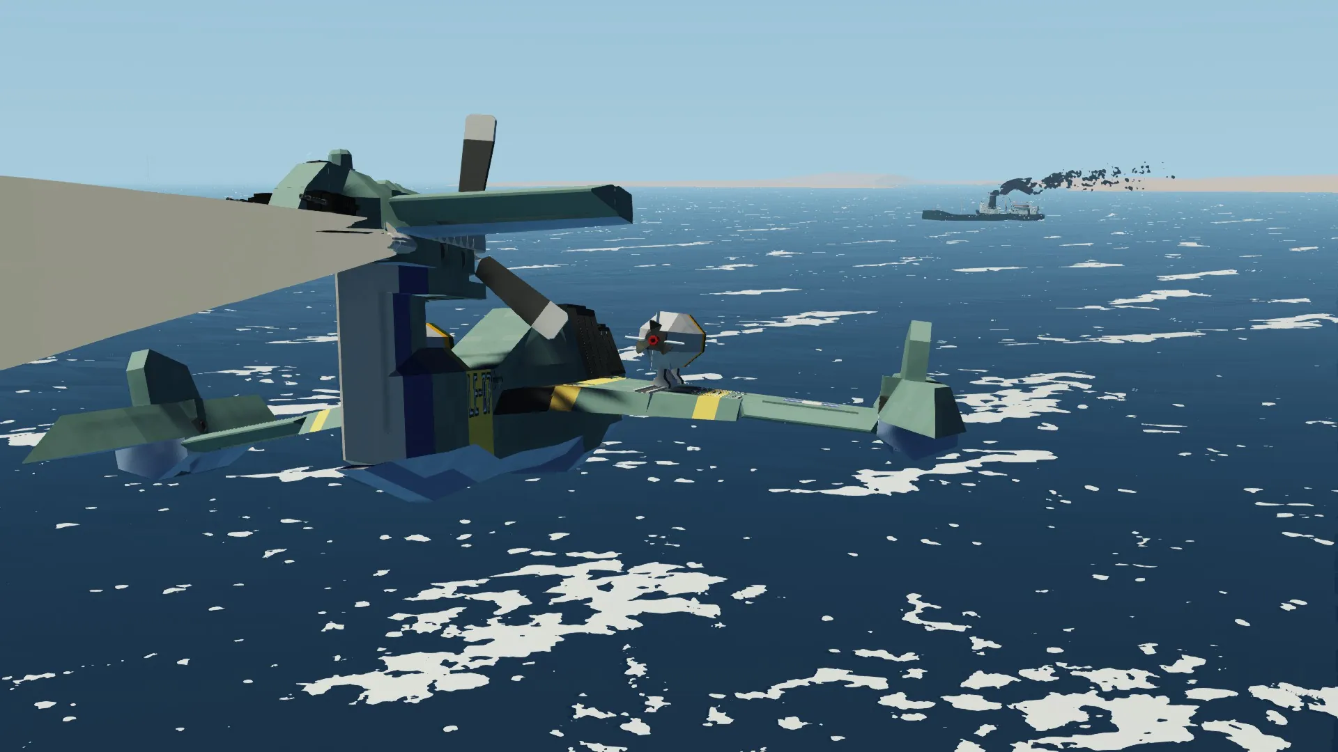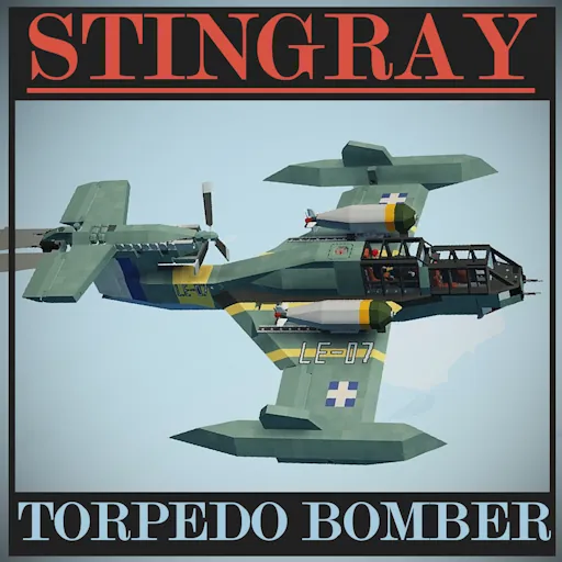 The stingray is a light torpedo bomber seaplane, designed for high-speed anti-ship missions. I also designed this aircraft to simulate the ground effect when flying over water (Does not work on land), in order to make torpedo runs feel easier and more effective.