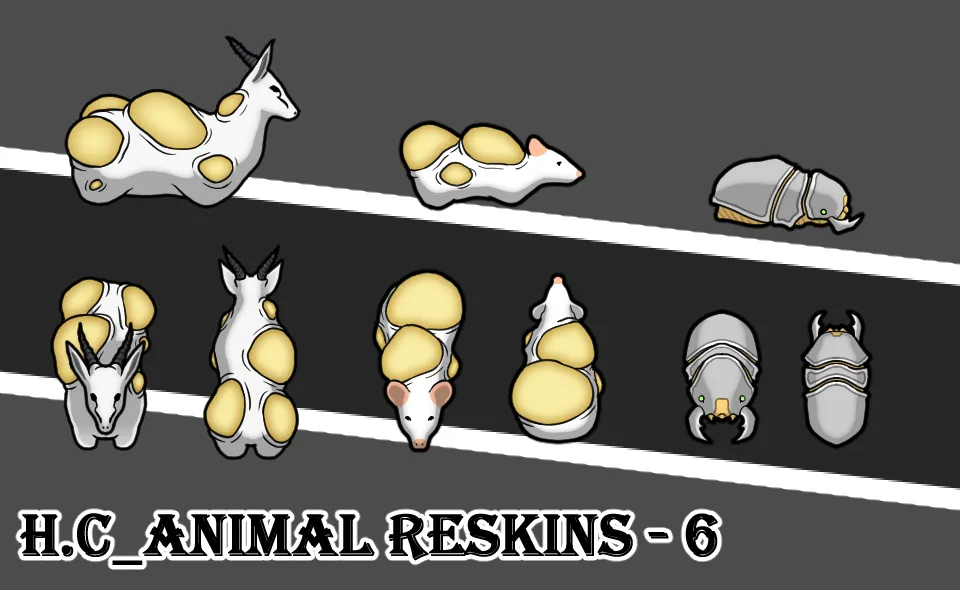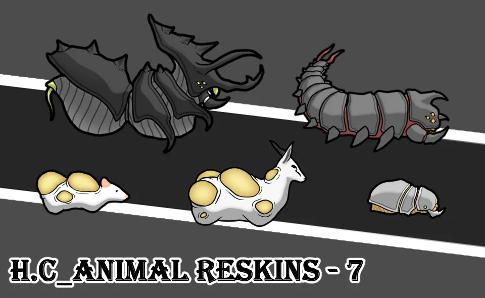 H.C 동물리스킨 팩 7번째. 폭탄사슴, 폭탄쥐, 메가스캐럽, 메가스파이더, 스펠로피드. 동물 5종.