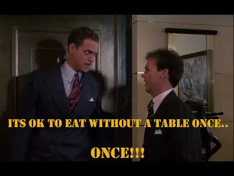It's ok to eat without a table...once. Greatly reduces mood drop for eating without a table one time. Increases it for more than once.