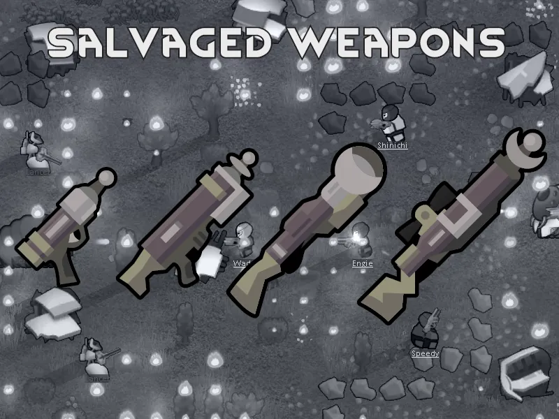 Salvaged Laser weapons are obtainable by players using a new Salvage laser weapon recipe, which uses intellectual skill of pawns and allows them to look through advanced components to come up with a random laser weapon. Salvaged laser weapons are less accurate than their state-of-the-art ultratech counterparts, and are more prone to overheating.