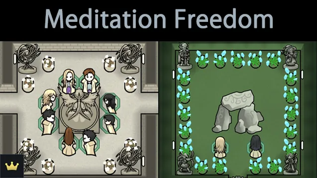 For the most part this mod is about playing how you want without penalties. With everything unlocked and without item/building restrictions you can have your people meditate however you want them to. Make everyone meditate over a campfire, an awful sculpture or build a lovely garden area with a nature shrine.