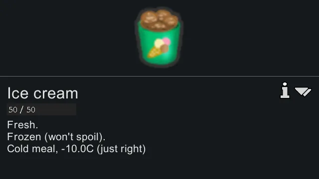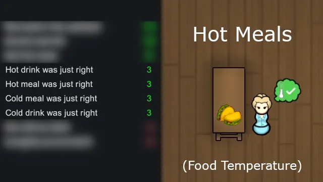- Frozen food (except for Cold Meals) will impose a significant mood penalty.