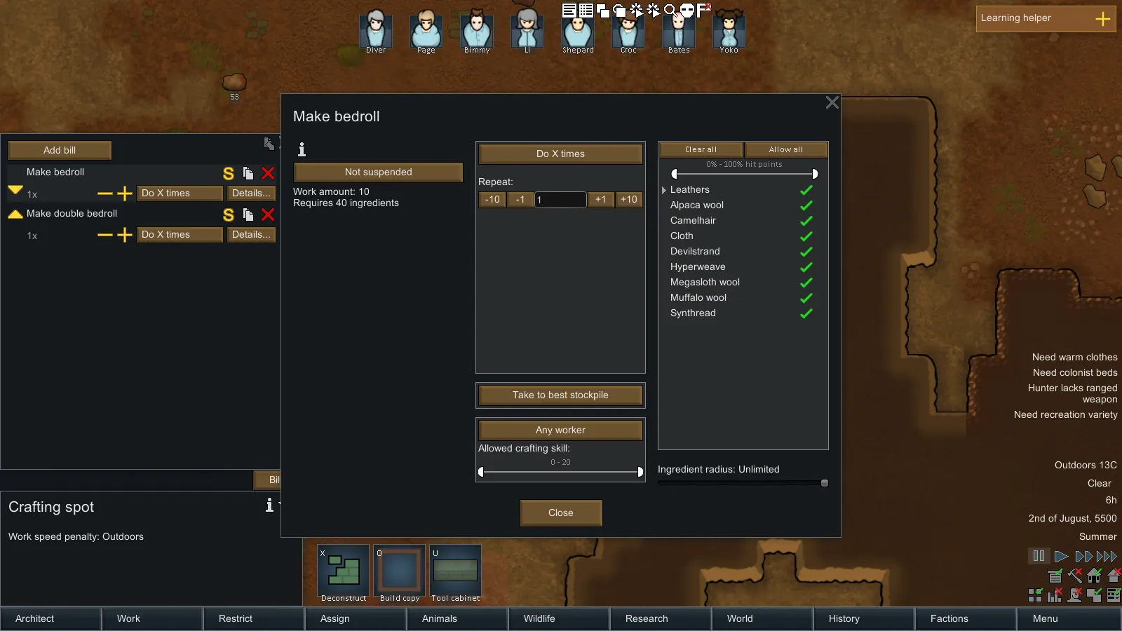 What the mod does: makes bedrolls and double bedrolls a craftable item, made in crafting spots or tailor benches, rather than built on the floor.