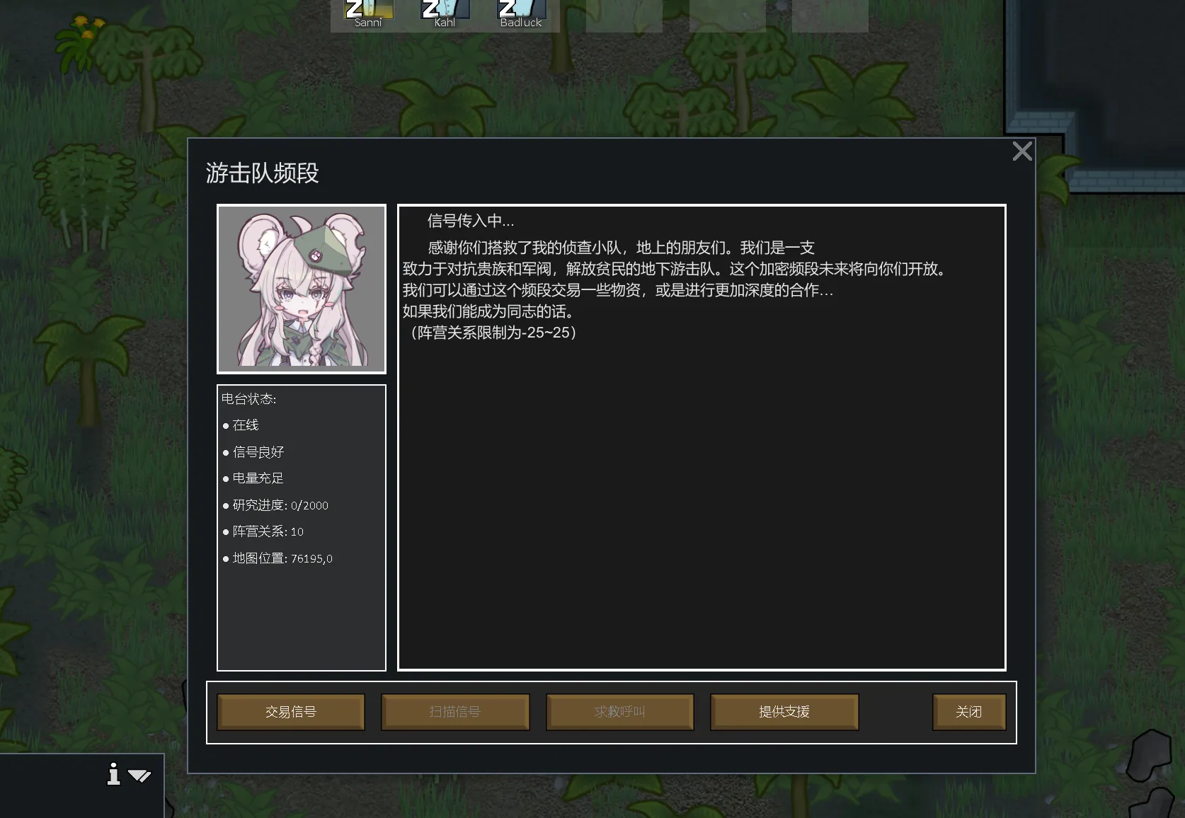 A:使用或更换为风信子叙事者,会有快速的保底任务触发,如果需要持续使用其他叙事者,则可以在游戏中打开“MOD调试”菜单选择“Ratkin Underground”点击按钮触发初始任务。