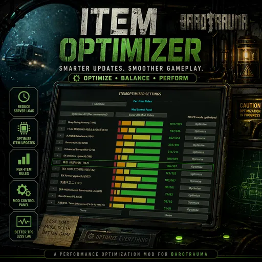 A performance optimization mod for Barotrauma. Cuts unnecessary per-frame computation in large submarines under heavy mod loads.