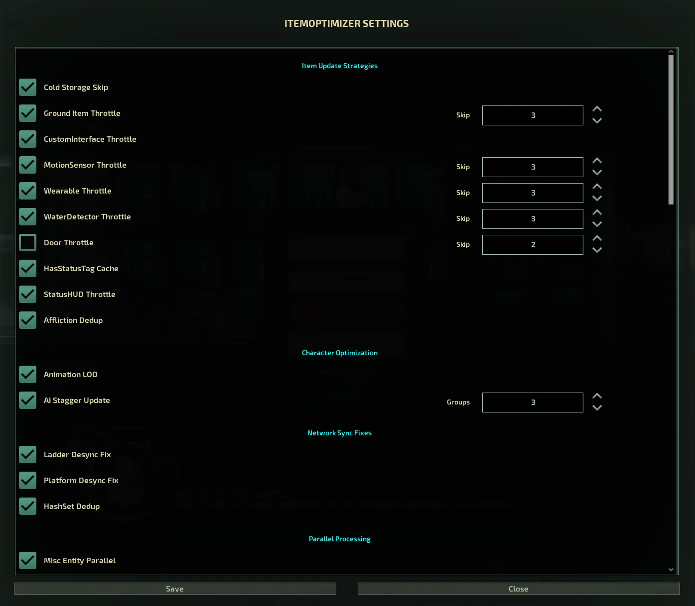 - Skipped items still receive minimum physics updates (position, buoyancy, network sync) — they don't vanish from the world
