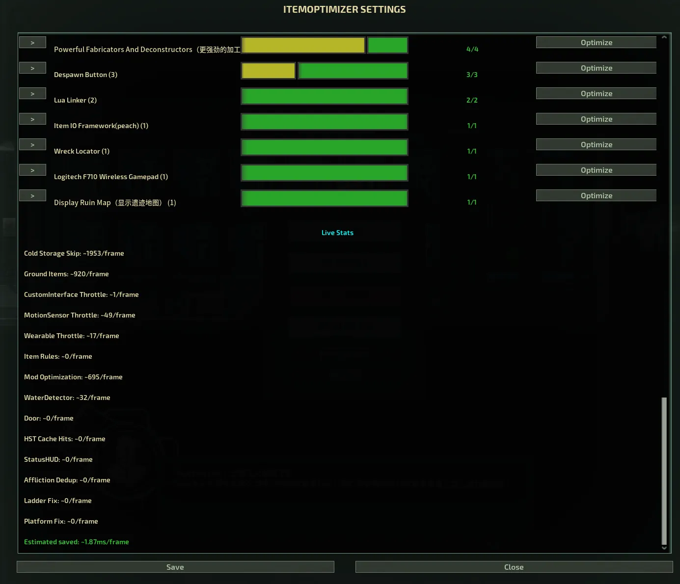 Every optimization can be toggled individually. In-game: press ESC → click "ItemOptimizer":