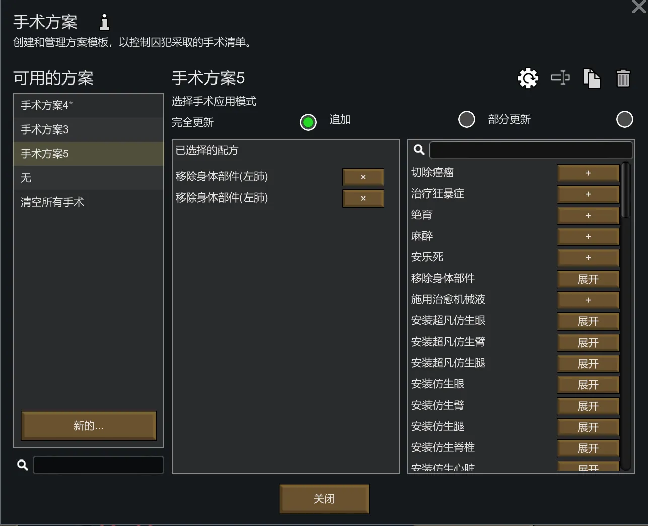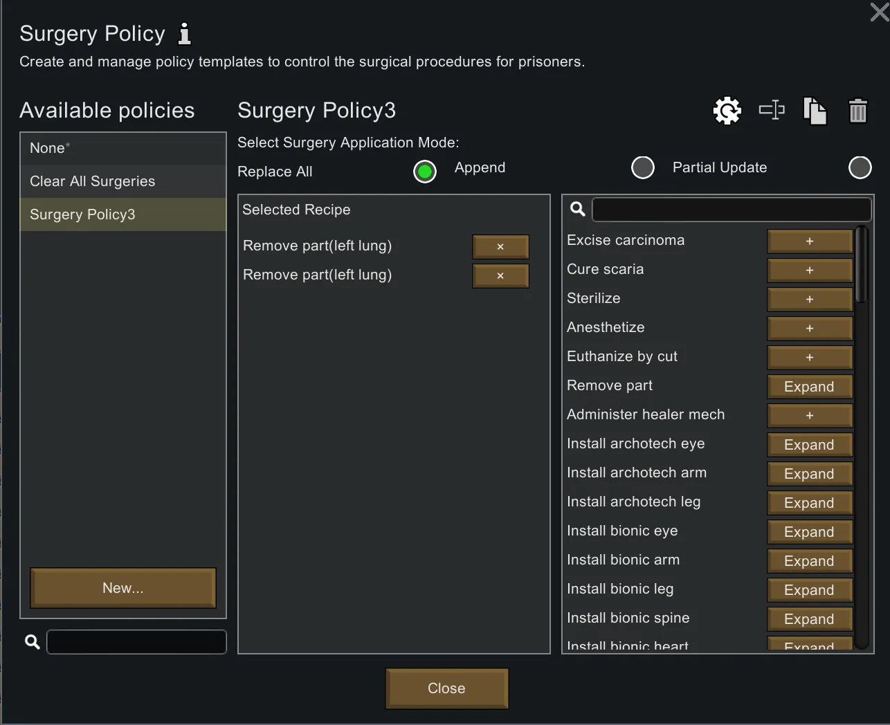 Special surgery presets designed for prisoners. Set up the surgeries you need in advance, then set a default surgery policy – new prisoners will get the procedures automatically, no more clicking through each one individually!