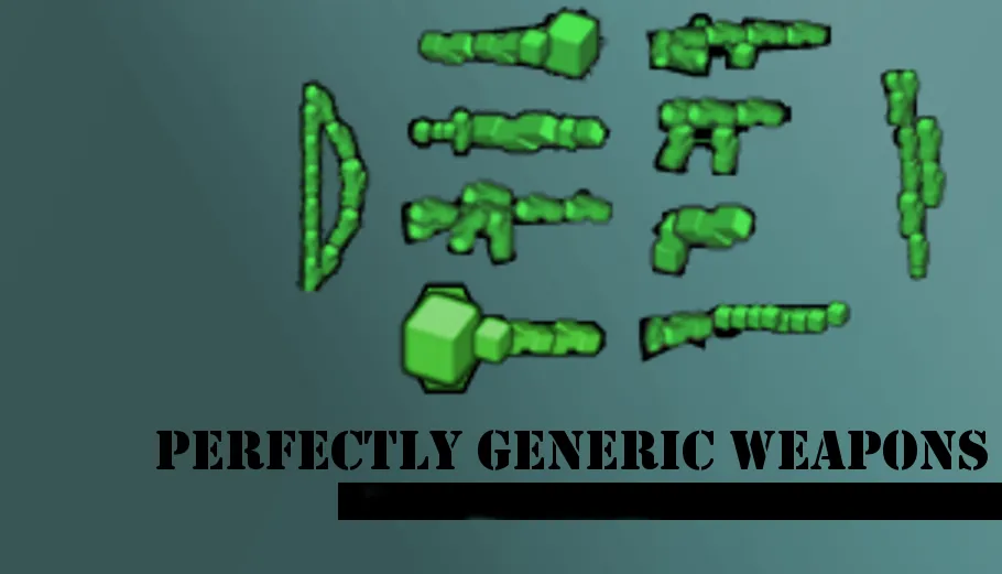 There are two varieties of generic weapons. The stats between them are the same but they look different. Perfectly Generic weapons are shaped like the original but are entirely composed of Perfectly Generic Items.