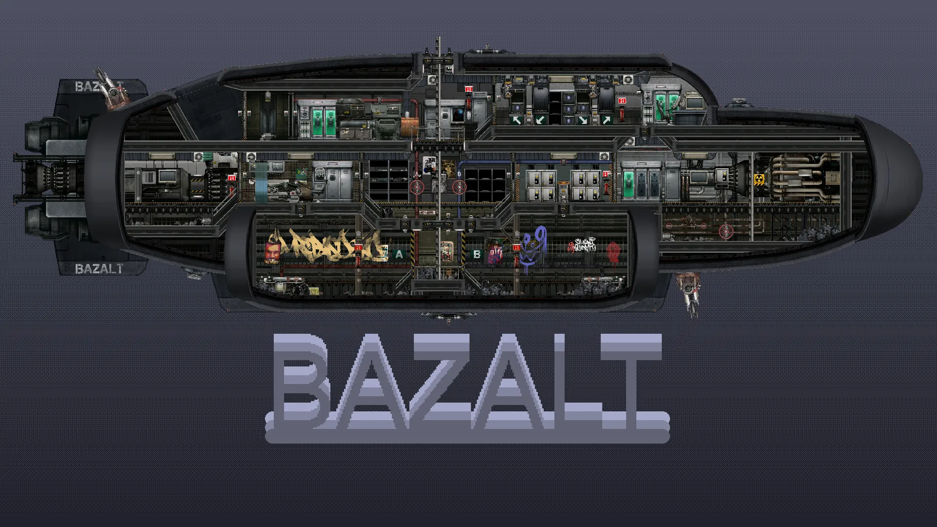 - Status monitors spread around submarine (Command room, Reactor room, Engine room)