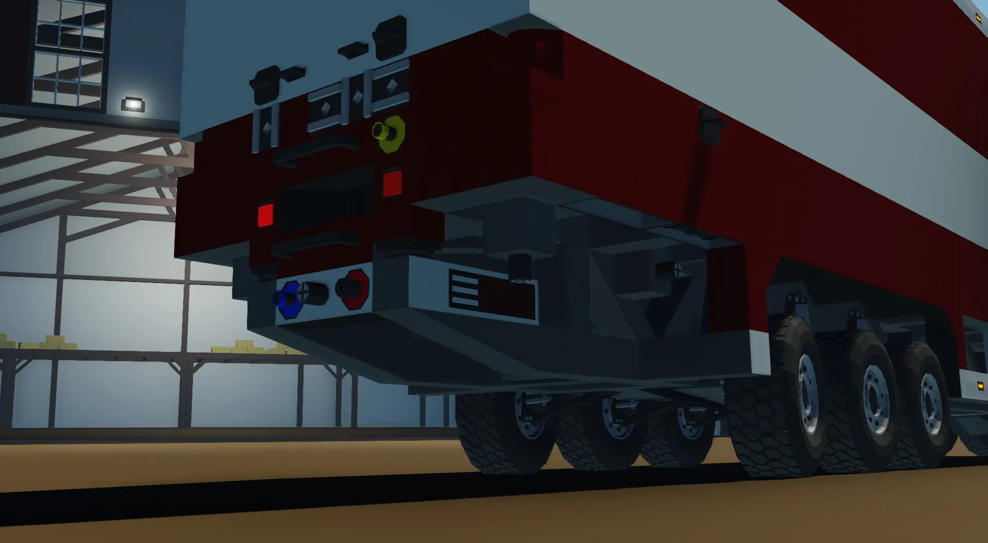 Manually release trailerbrakes and raise landing gear on the right side of the trailer.