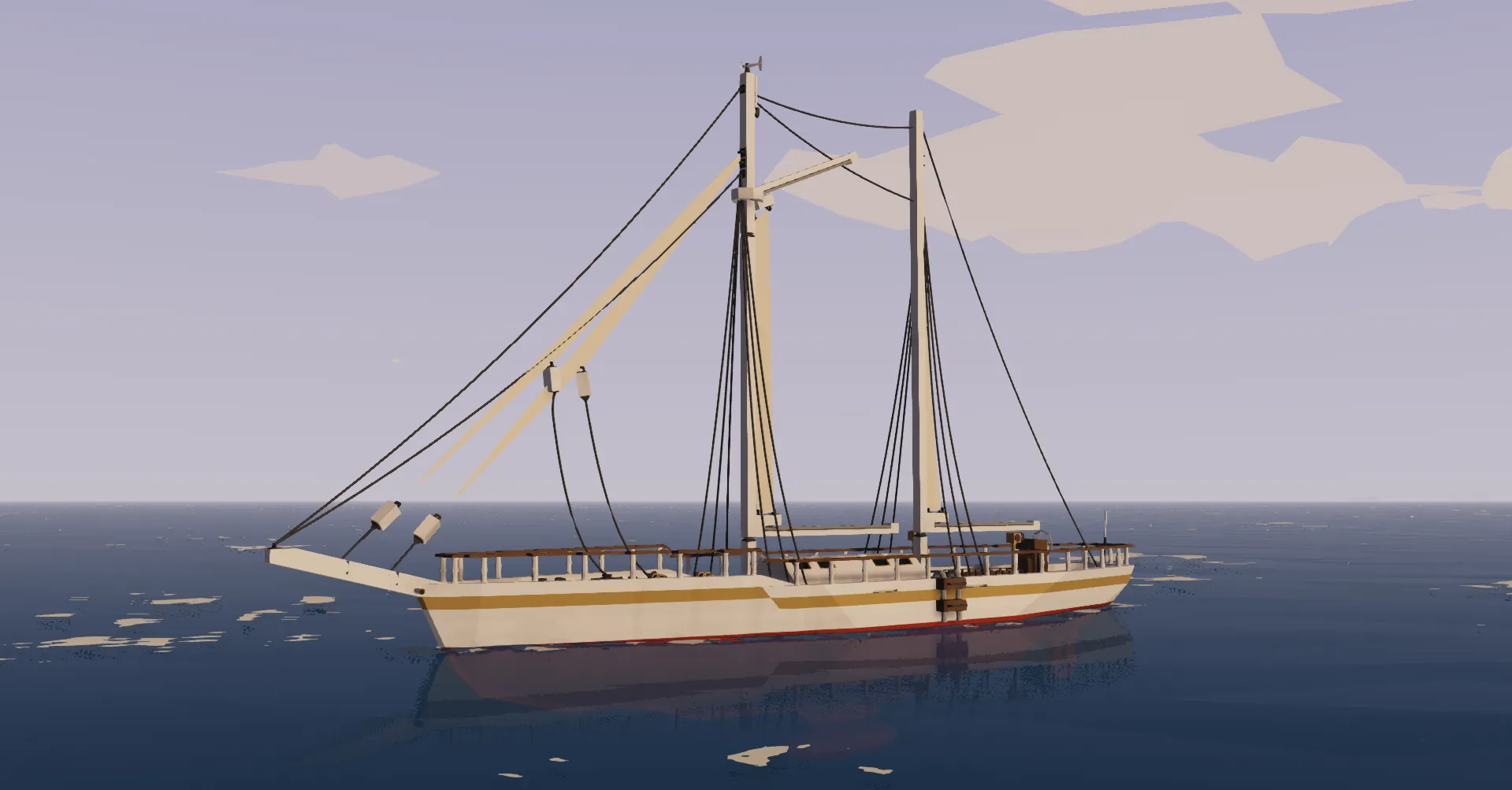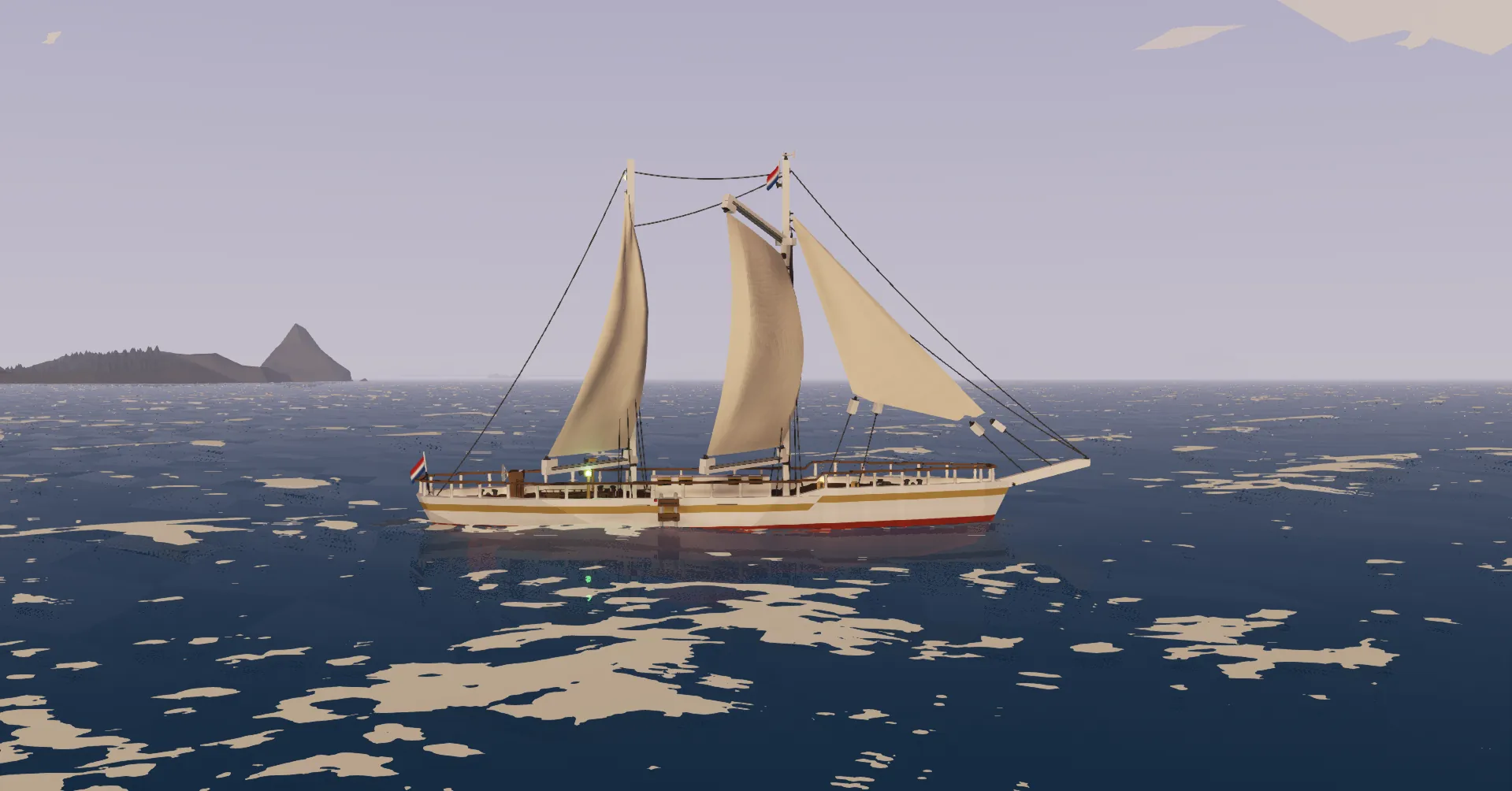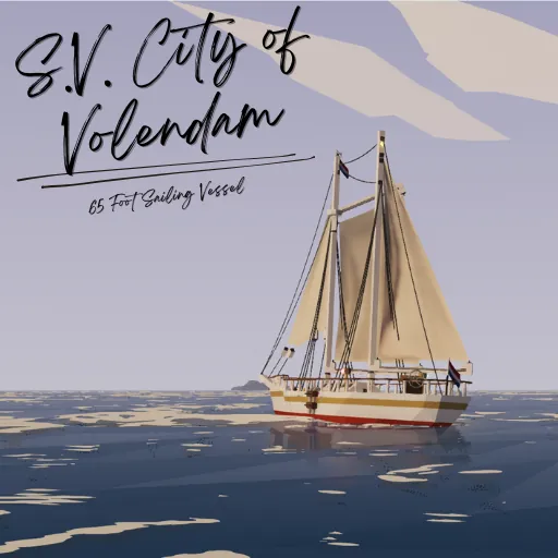 The City of Volendam is a 65 foot un-powered Dutch sailing vessel with 2 masts and a top speed of 21 Knots. Its lack of an Auxiliary engine saves weight while leaving the ship to be reliant on wind alone.