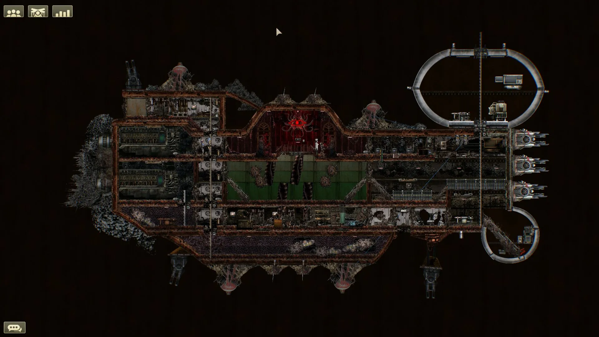 这是一艘由生物引擎驱动的血肉潜艇,使用血肉枪拖拽目标到附近后血肉钉刺会自动打出钉刺并释放t细胞,将生物扔进那只眨动的眼睛下方的消化池以给舰船充能。