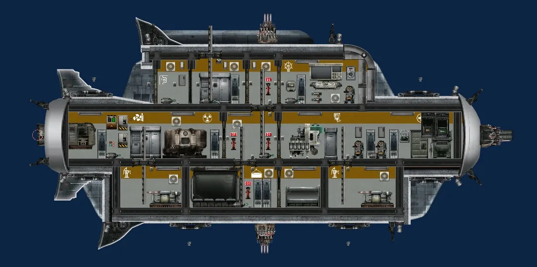 8座自动近防炮,2座3连装破片加农炮,1座双联加农炮与3联激光发射器整合得炮塔,60%覆盖电圈,禁闭室,小货仓,电器较少,800外壳,200内衬,这就是颌针鱼!!!“但是你这颌针鱼怎么那么胖?”