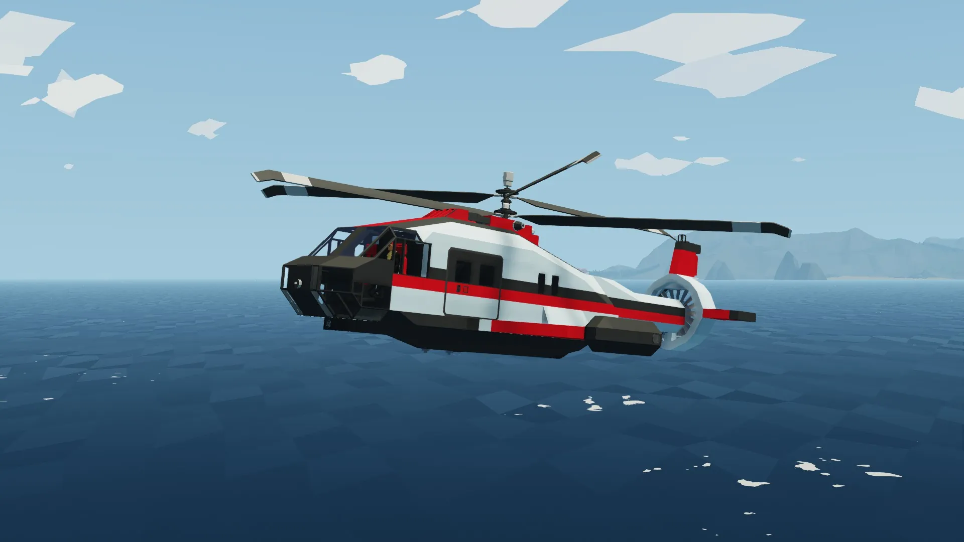 The SV101 is a semi-amphibious (Meaning it can float on the waters surface under beneficial weather conditions, but must remain under some power to keep the doors above the waterline), designed for high-speed flight, using a copound helicopter/aircraft arrangement using a pusher ducted fan on the tail.