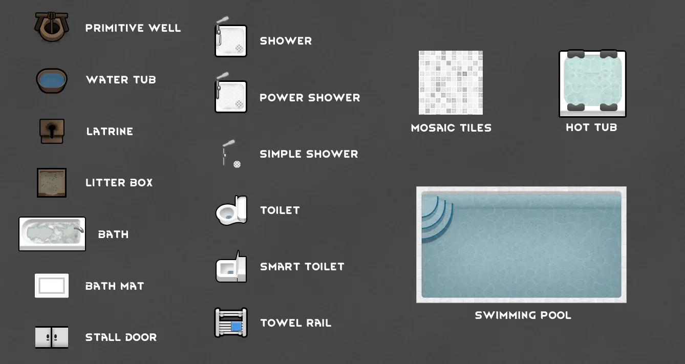 [b]Adds a sewage system, toilets, bathing, hygiene related needs and mood effects, central heating, water, irrigation, fertilizer, air conditioning, hot tubs, kitchen sinks, you name it!. Includes Lite mode. Multiplayer ready[/b]