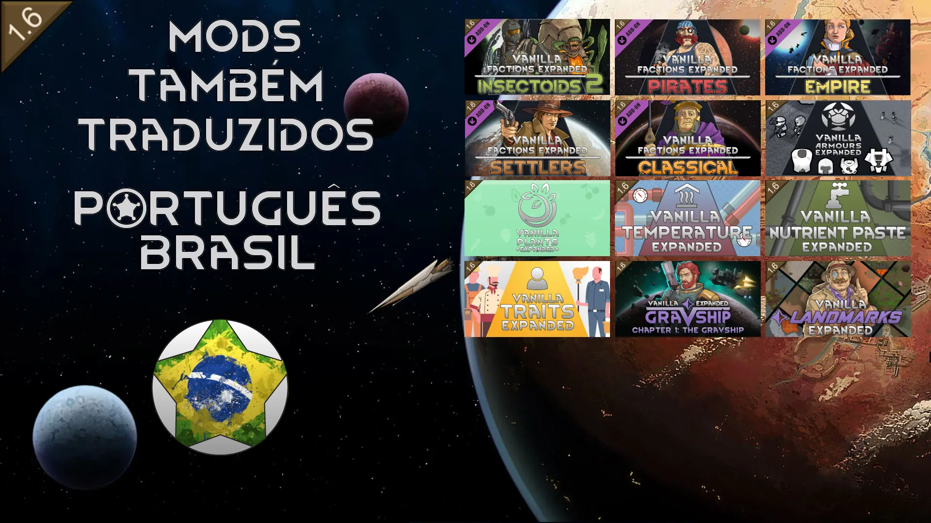Este é um projeto centralizado para os mods da linha [b]Vanilla Expanded[/b], oferecendo uma experiência acessível e integrada ao idioma Português do Brasil.