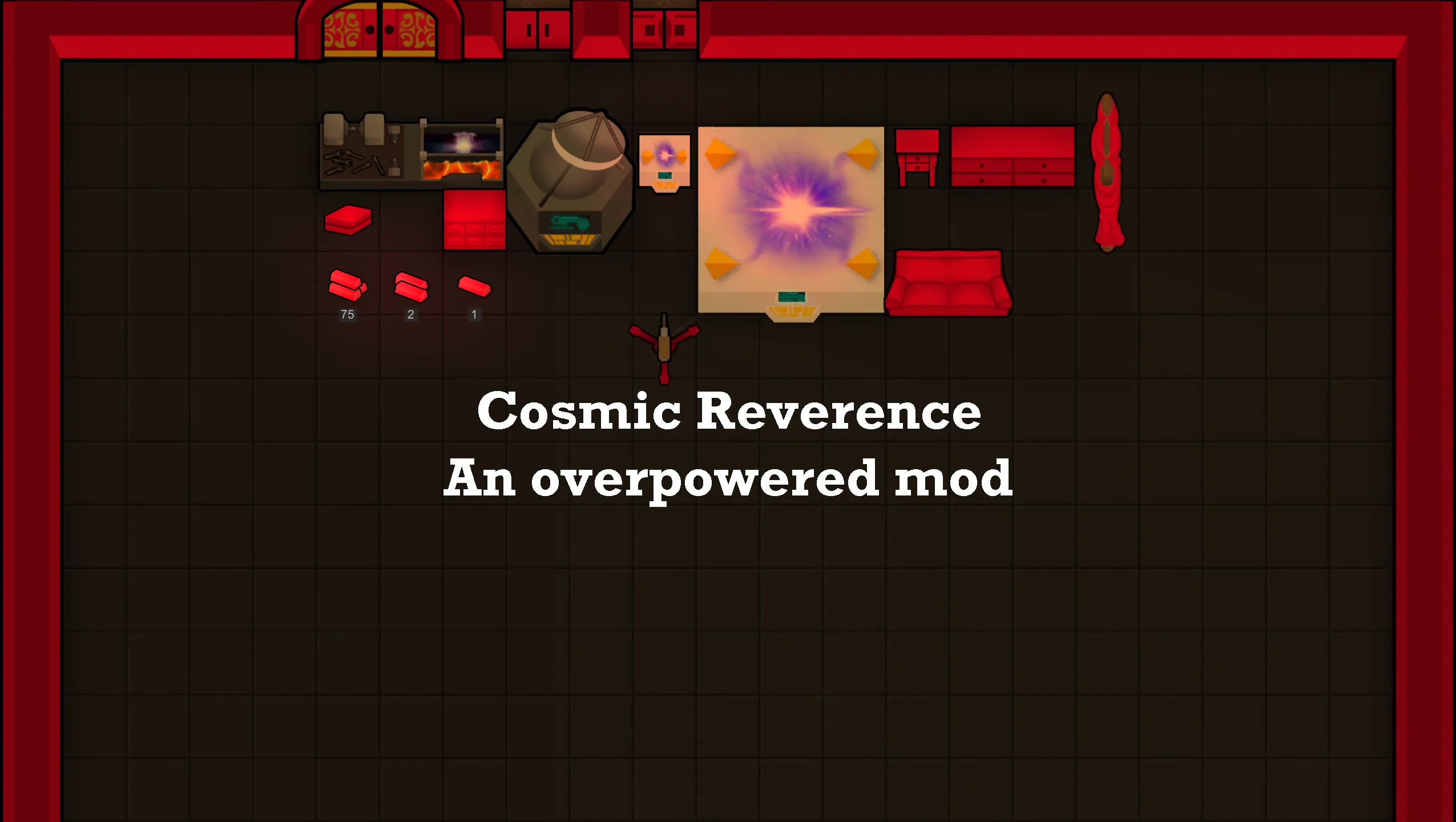 Cosmic Reverence is, to be frank, an extremely overpowered mod that adds a multi-purpose material, an infinite chemreactor-like building that produces it, bionics that cover every body parts and organs, a workbench to make them and two power generators. There is also a universal tool cabinet. For a semblance of balance, everything is unlocked after a veeery long research project.