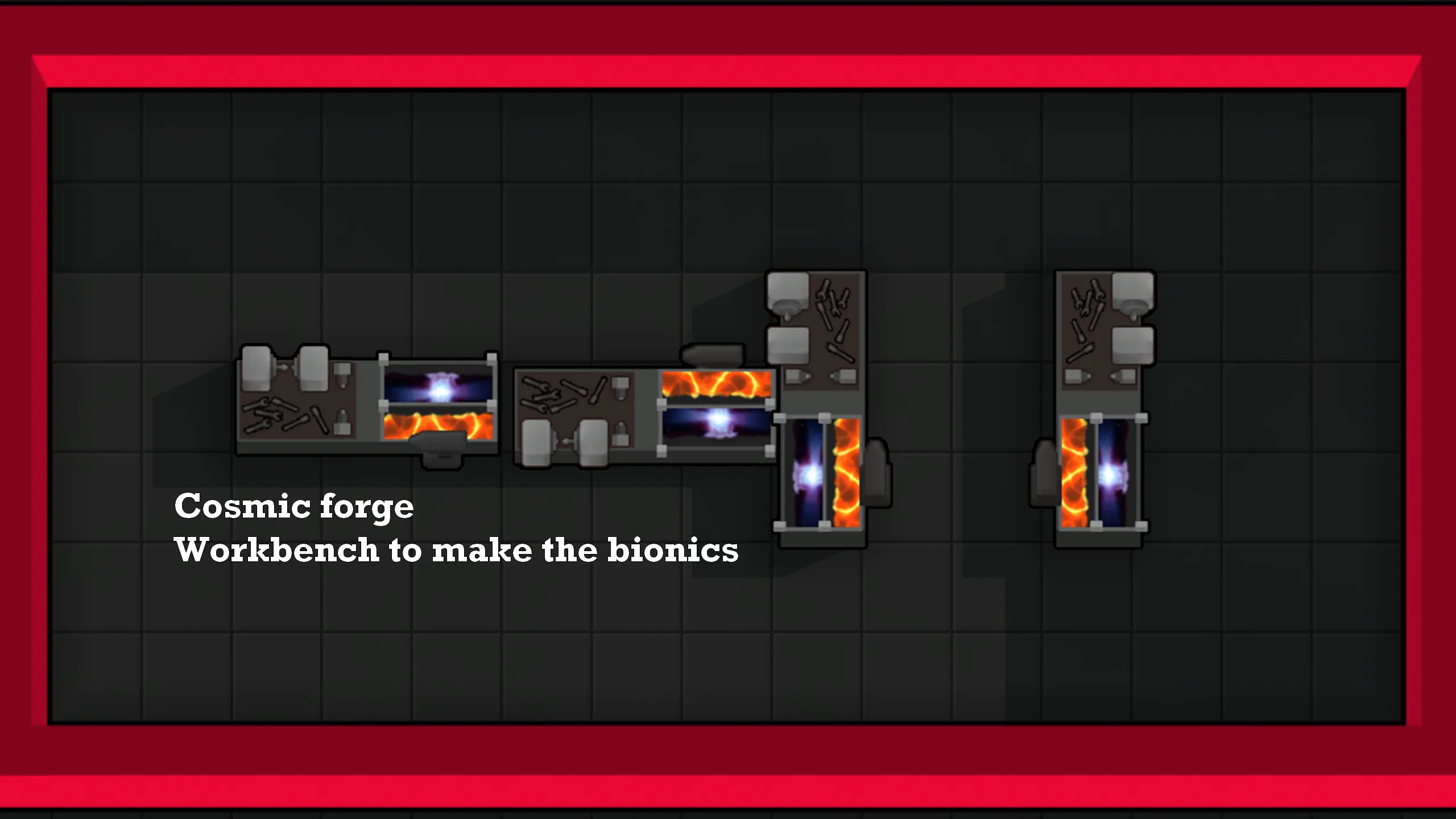 The workbench which allows crafting the celestial bionics. It's powered by a supernova similar to the power generators, but on a smaller scale. This means it doesn't require power at all.