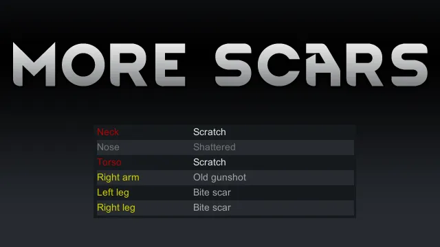 This mod substantially increases the chance of receiving scars on any body part. This is ideal for anyone who wants their colonists to remember the day they cuddled a grenade, took an arrow to the knee or heroically saved the hospital from a deranged pyromaniac.
