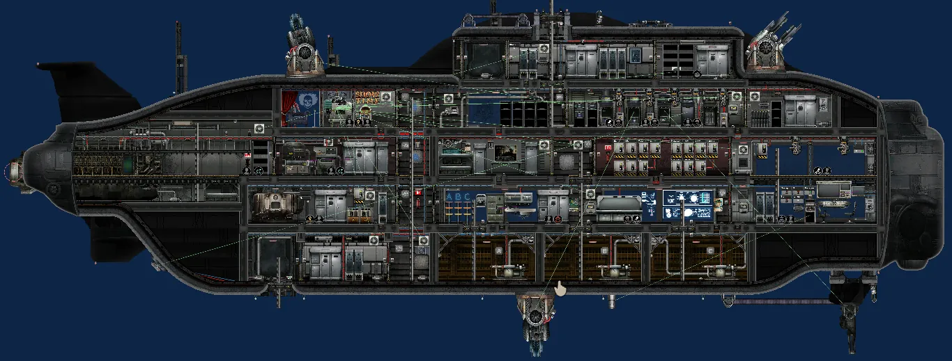 Typhon‑2.1 is a continuation of the Typhon‑series submarines. Thanks to the solid foundation provided by the Typhon‑2, the Typhon‑2.1 features relatively minor upgrades. The key global changes to the submarine include: relocating the medical bay from a small cramped room to an entire floor above the ballast tanks, which should significantly improve crew survivability.