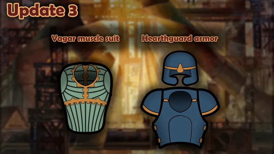 Also added new apparel: the Vagar brawnsuit, which increases the wearer's carrying capacity, and the Hearthguard armor set for those who want a low-tech alternative to the Oakbreaker set.
