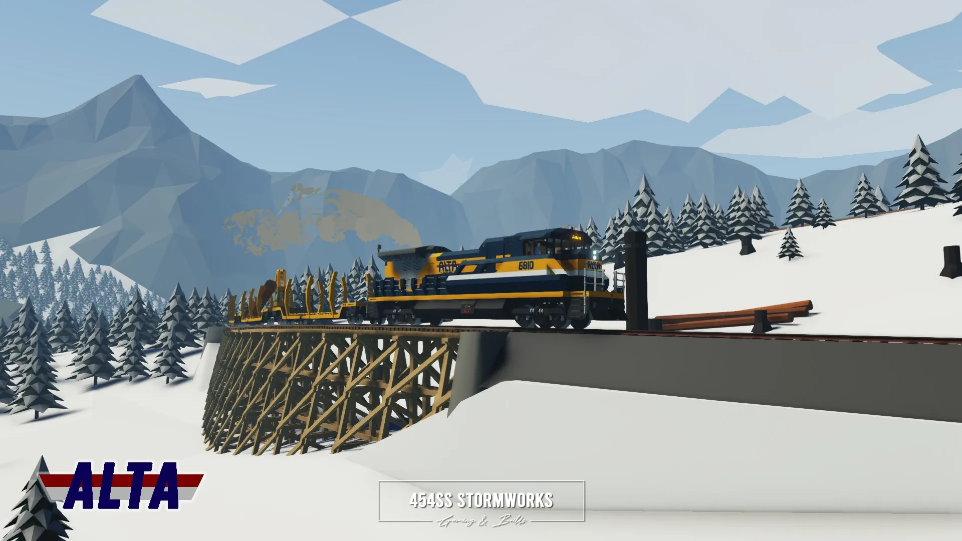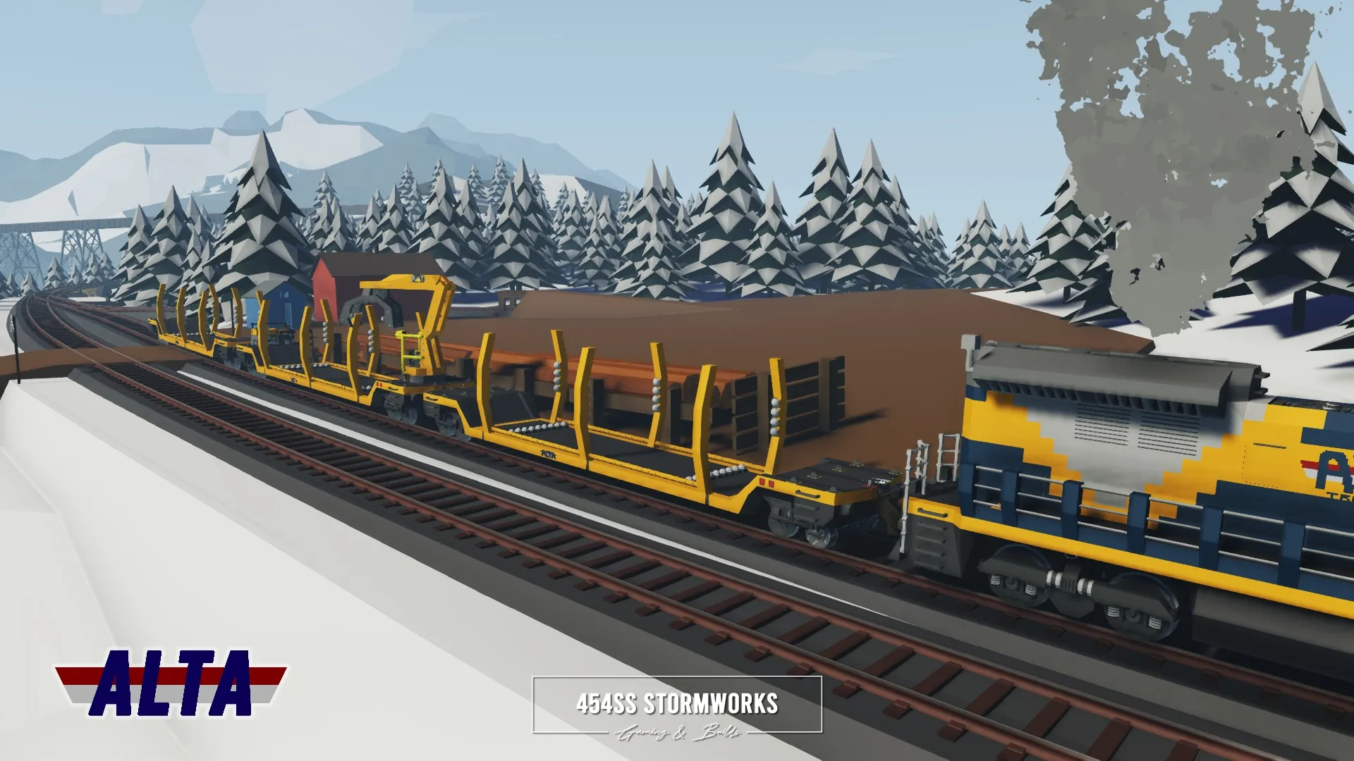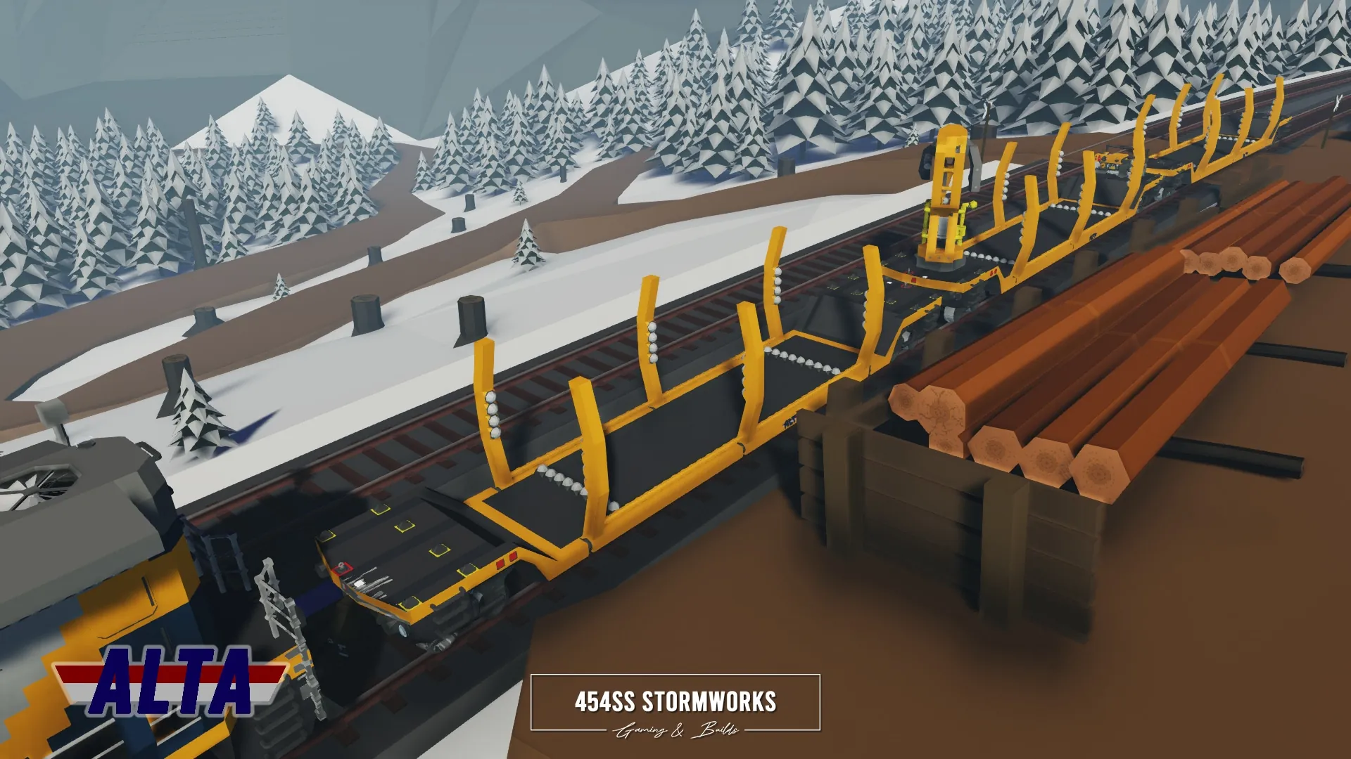 Logging railcar owned by ALTA Corp. For full functionality, the locomotive must be RCU Standard Compatible.