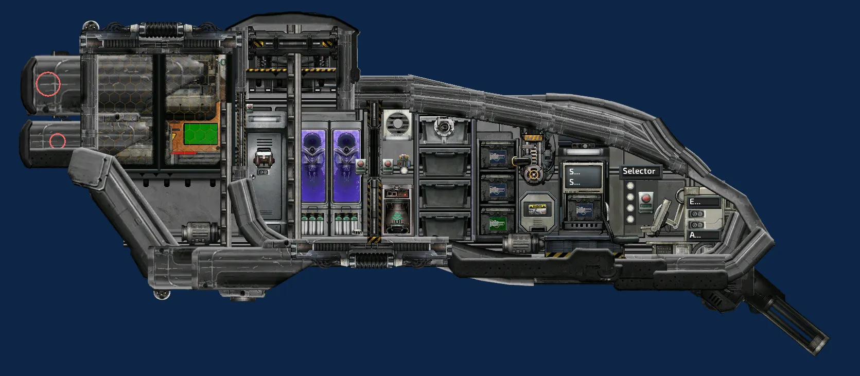 The shuttle comes equipped with a shelf of crates and a small cabin for storing essentials or retrieving supplies from hard-to-reach areas.