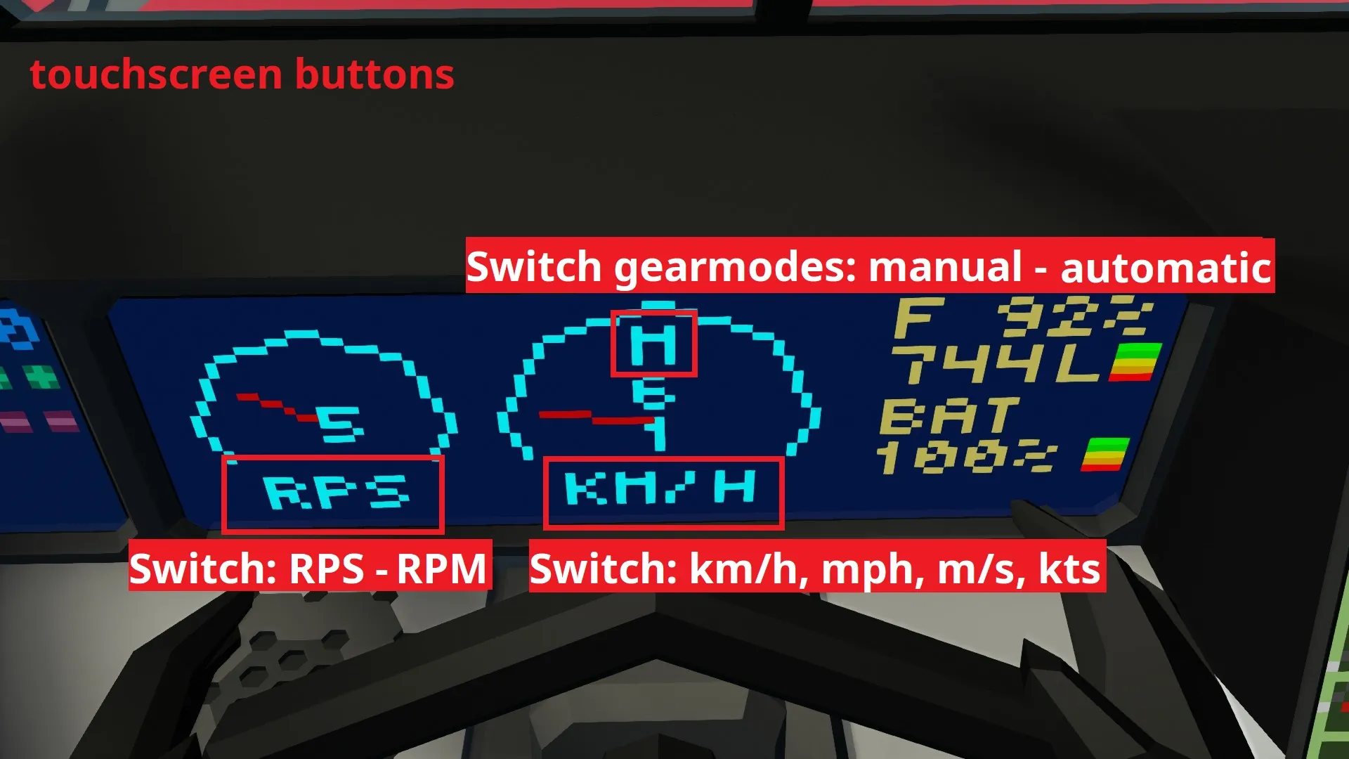 gears: neutral (N), battery load (BL), reverse (R), low gear (L), drive 1 (1) and drive 2 (2)