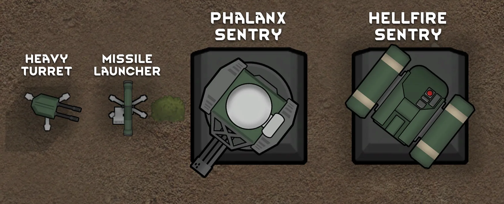 The heavy turret is a much more powerful version of the mini-turret. It fires twice as fast and is much more accurate with each shot. Can be built after researching Heavy Turrets, and can fire 300 rounds before it needs to be reloaded.