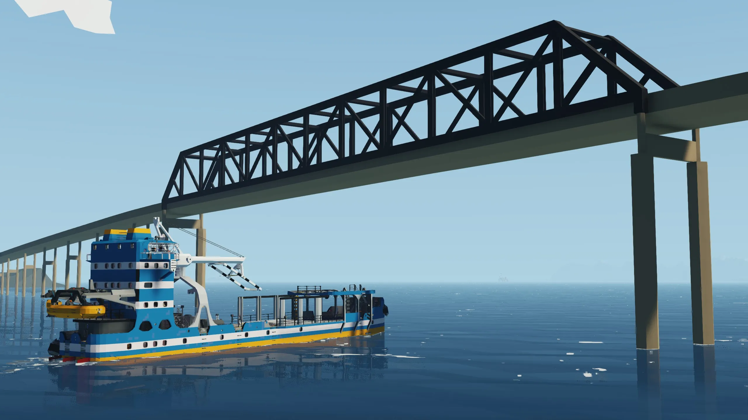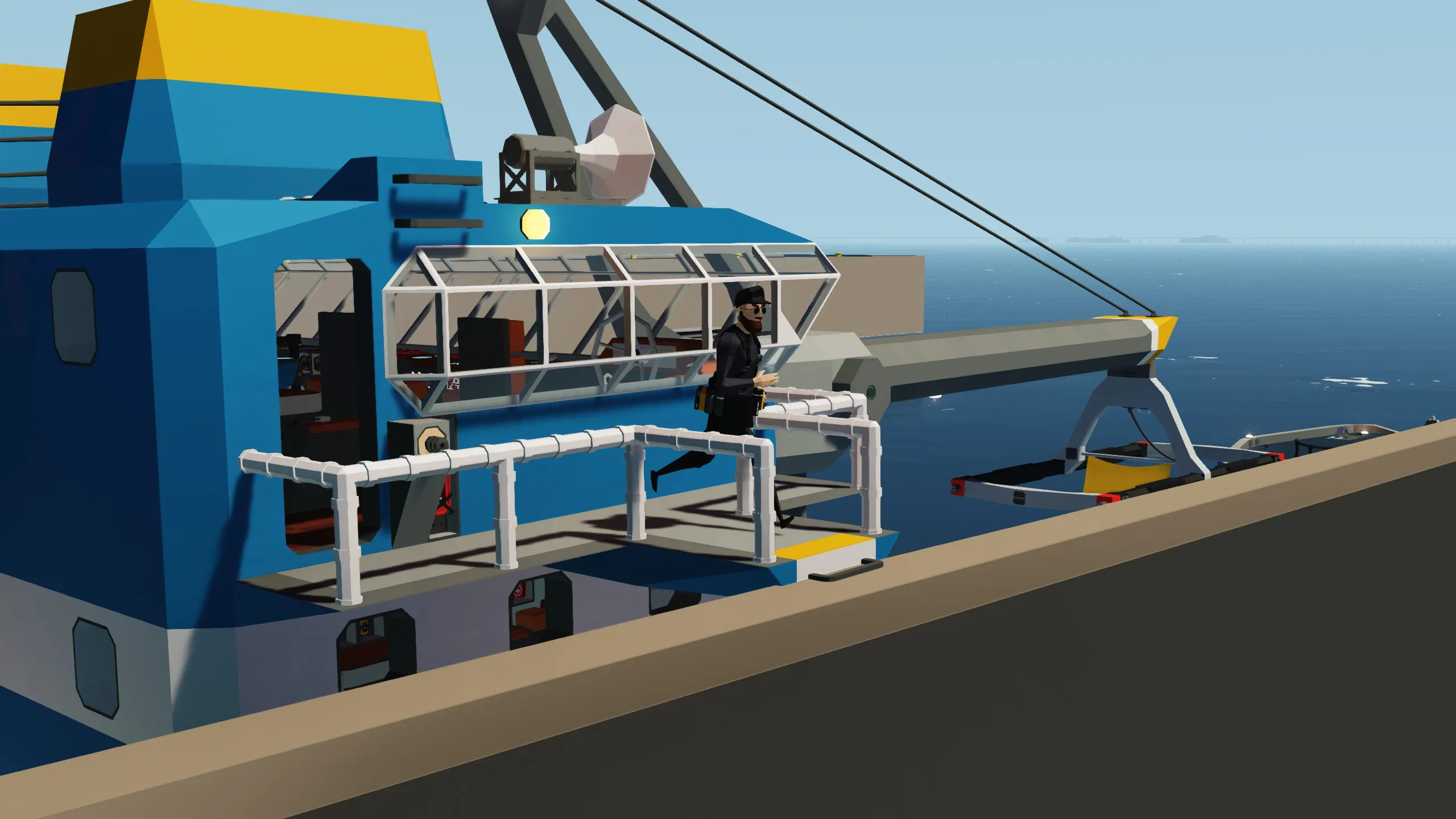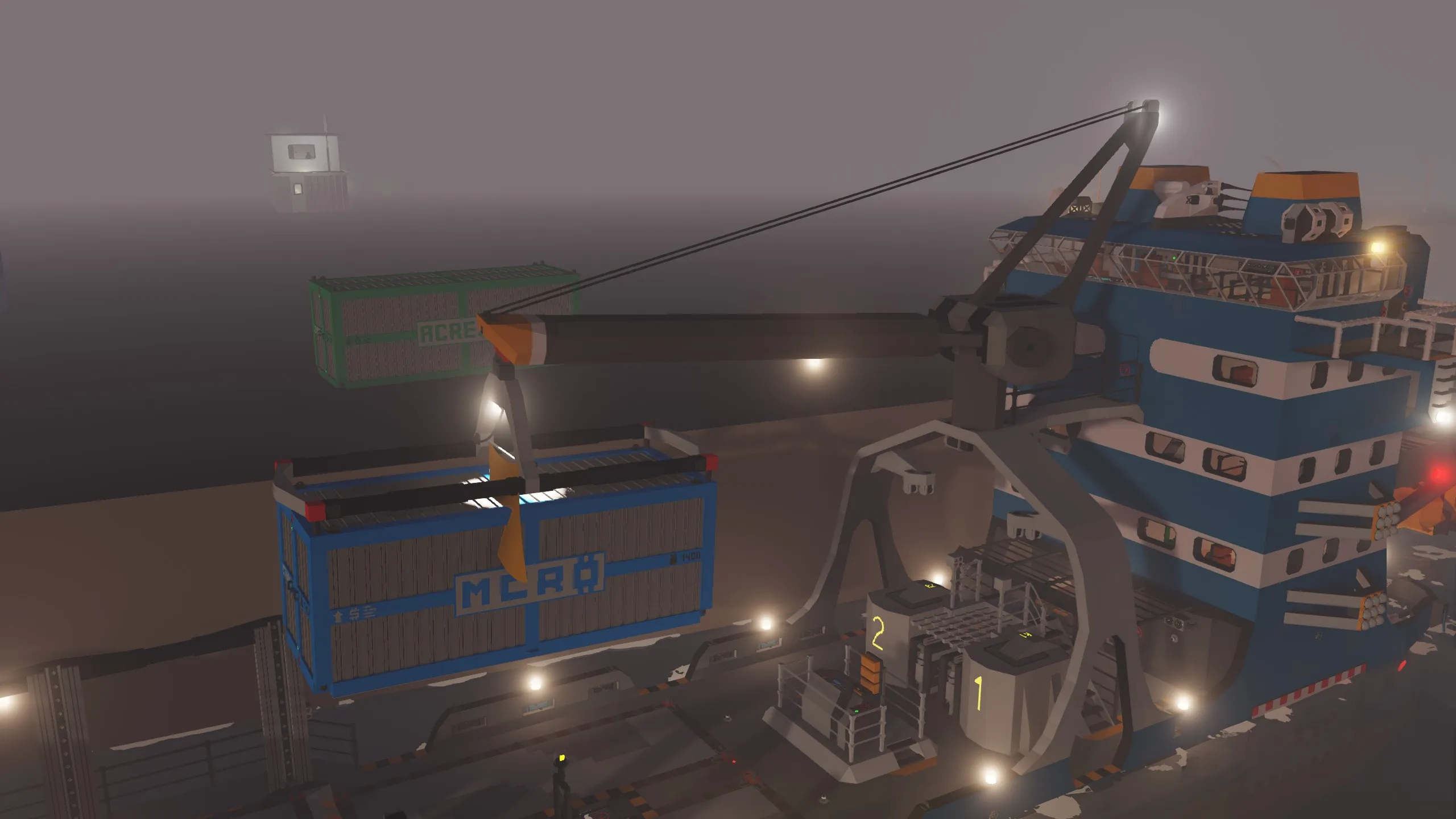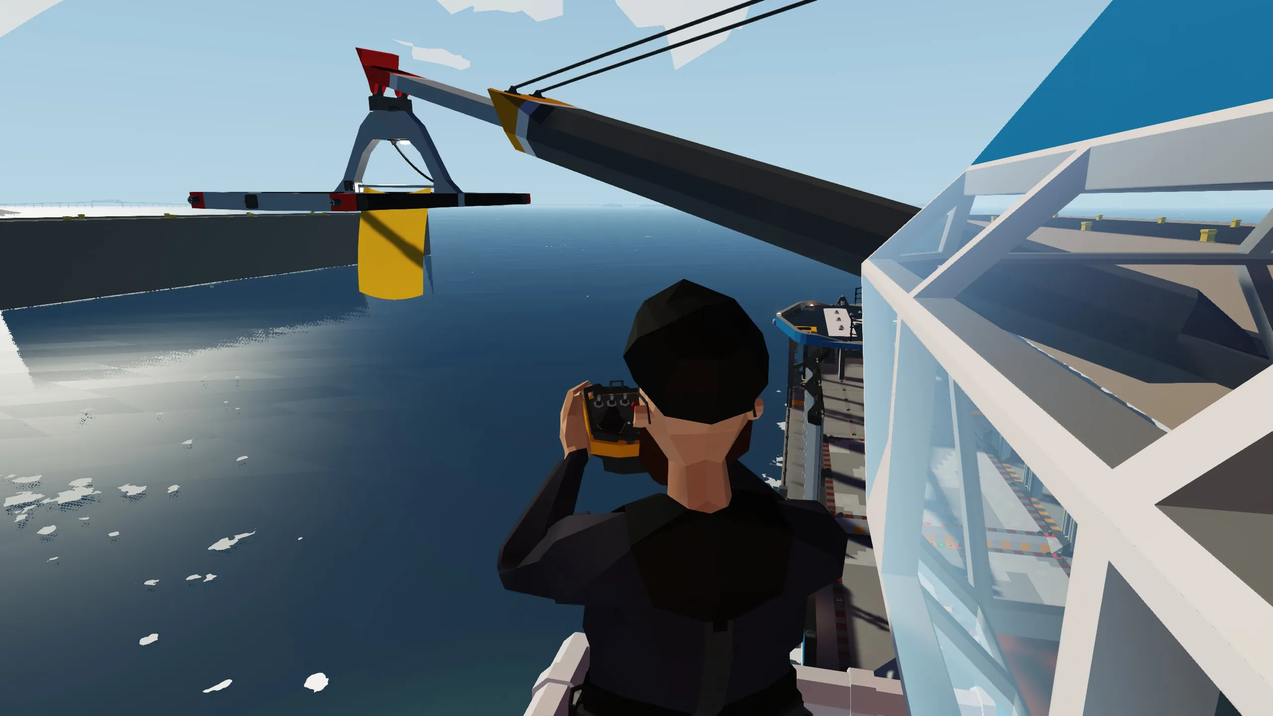 - Remote control operation capability (for ship and crane movement)