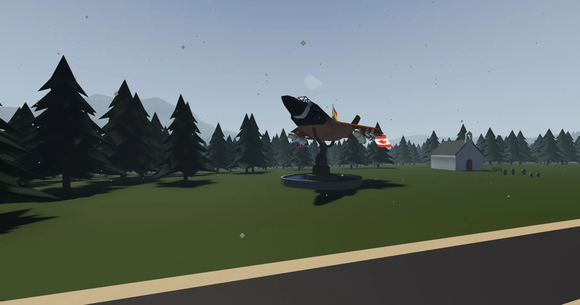 A statue featuring a Royal Canadian Air Force CF-180A Nirliq. This mission spawns it in at Holt Town, on Sawyer (The Big Island).