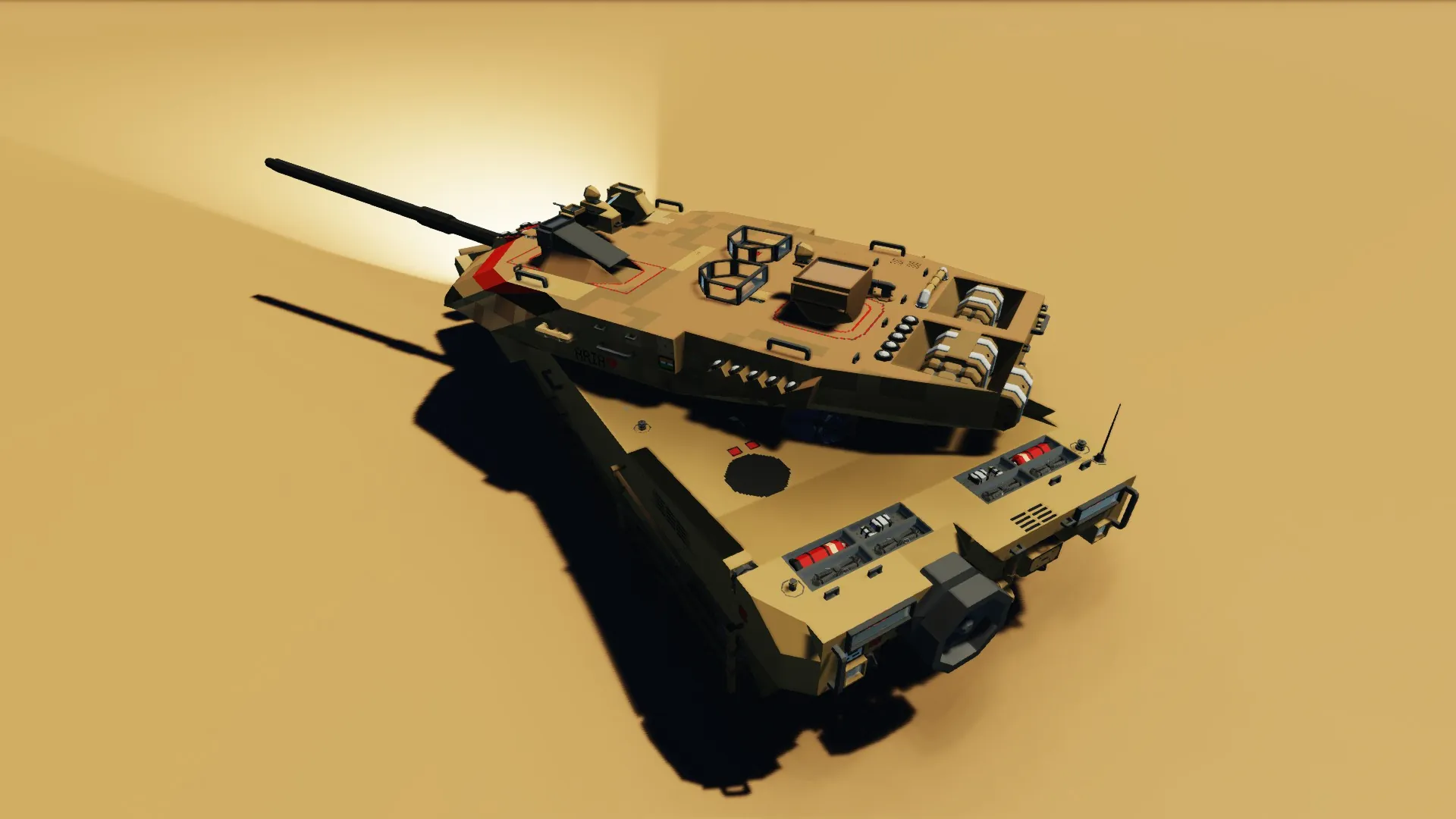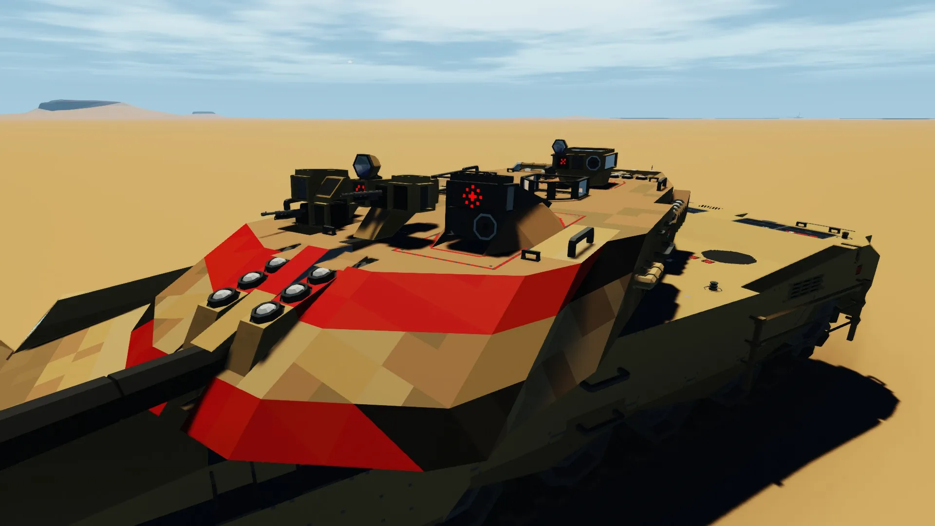Say hello to Aria! AVM's latest MBT! Aria took a long time to design as this time, AVM wanted to completely redo their MBT design. As previously mentioned, Aria is the latest and greatest MBT AVM has ever made. Featuring good frontal armour, amazing mobility and good firepower, Aria is more than equipped to fight in the desert regions. Aria is designed to be a frontline MBT which can also be used for defending positions.