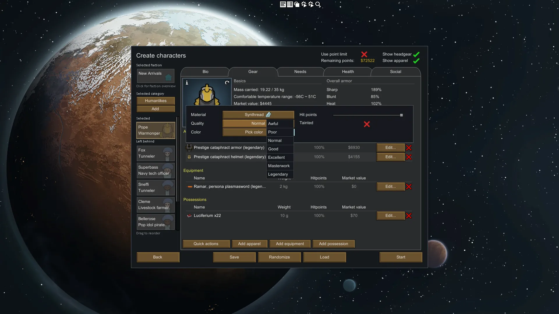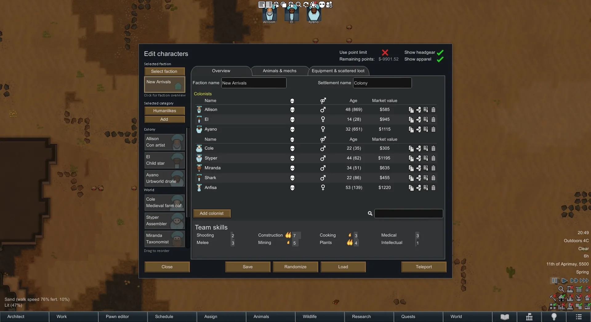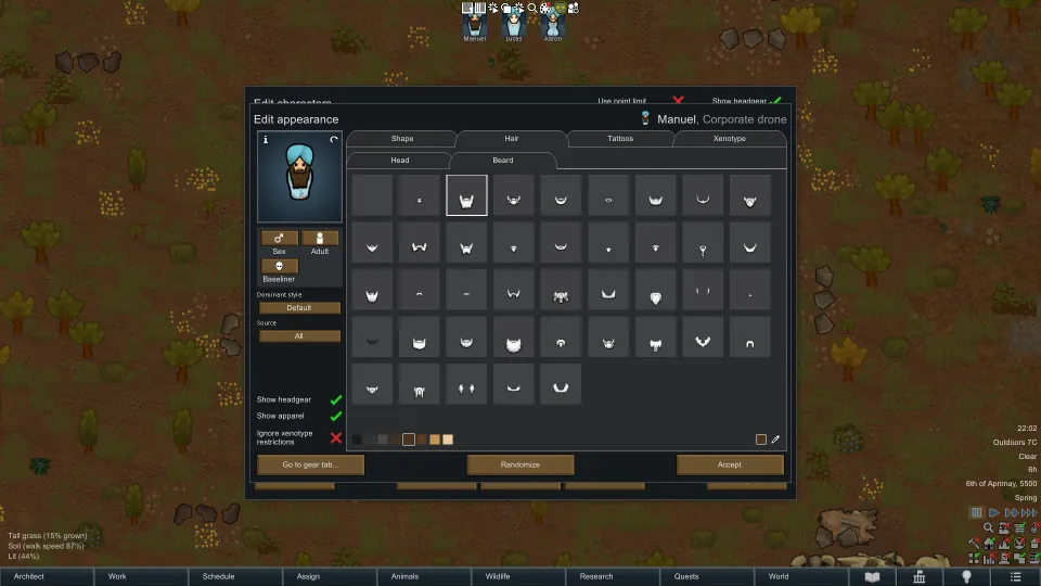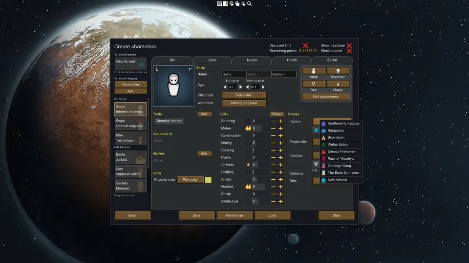 [*] Change the backstory, trait or skills for your pawns. Use filters to easily find that specific item you are looking for.