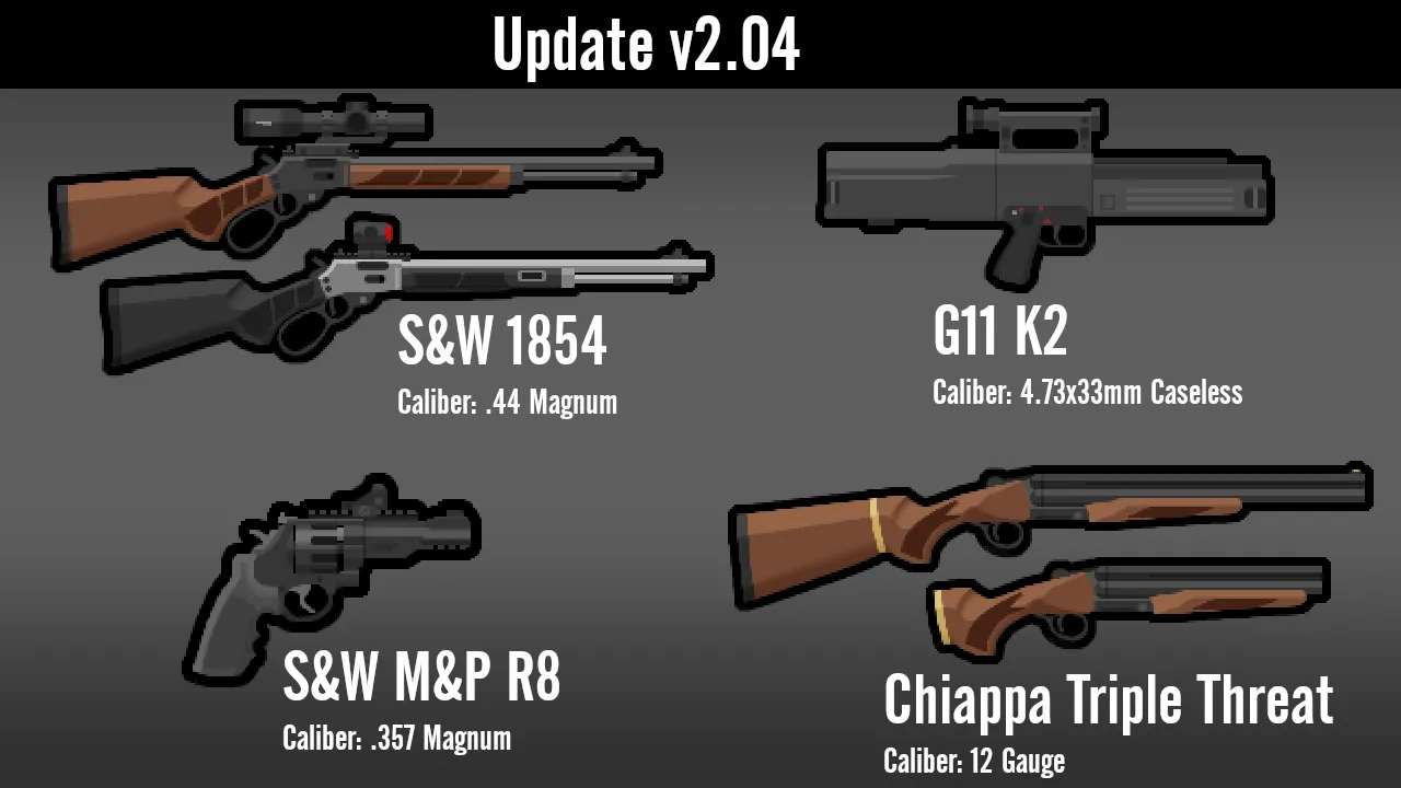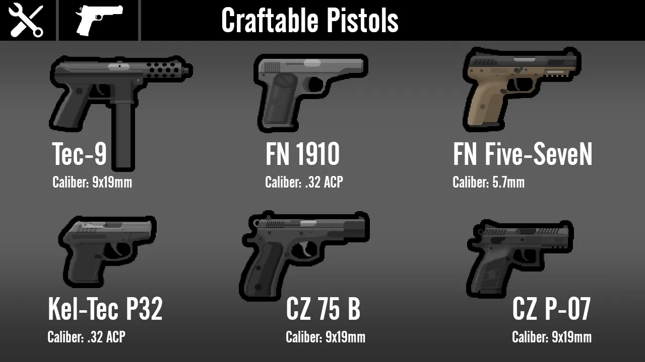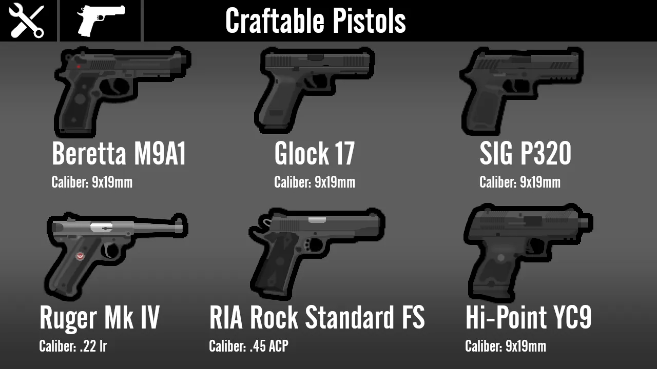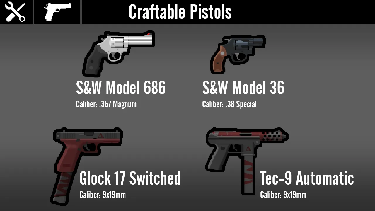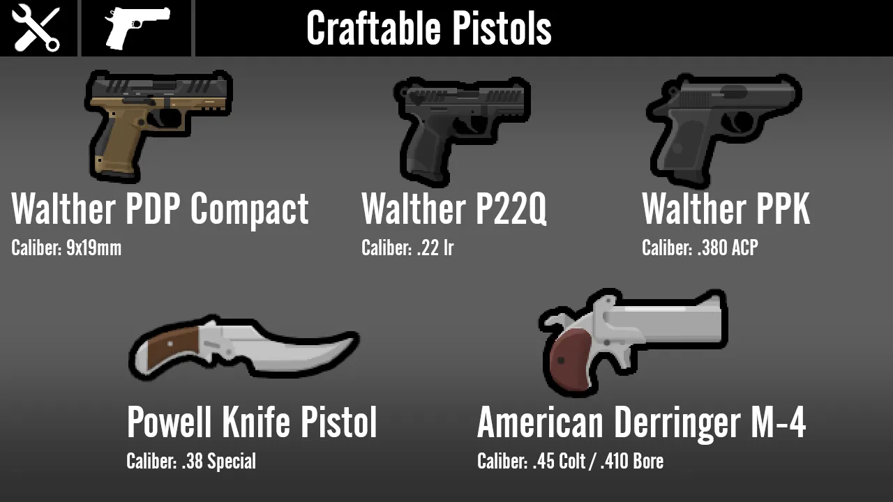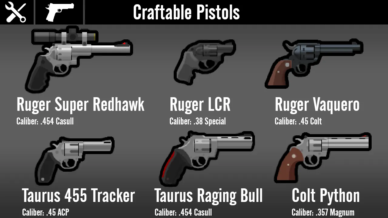 A: I only really made this mod so that pirate raids show up with more than just the same revolver every single time, and because for some reason every gun mod I've seen has that one gun that is super rare and exotic in real life with only like 0.5 of them made and in-game they show up in every raid. Plus, I've just noticed a strange lack of mods with guns that normal people actually use day-to-day. Instead, it's mostly military weapons and obscure prototypes, which I do love every once in a while, but I'm honestly just more interested in weapons I can legally own, which is why there's a larger emphasis on pistols and AR-15s here than any other workshop mod.