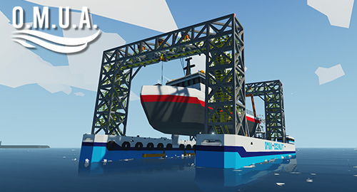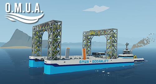 The OMUA OceanLift is a large salvage and recovery barge operated by the Oceanic Marine Underwater Agency (OMUA), a multinational marine research organization. It consists of two large gantries capable of lifting a fully loaded ship, a control room to operate the winches and a generator room equipped with a GTC generator.