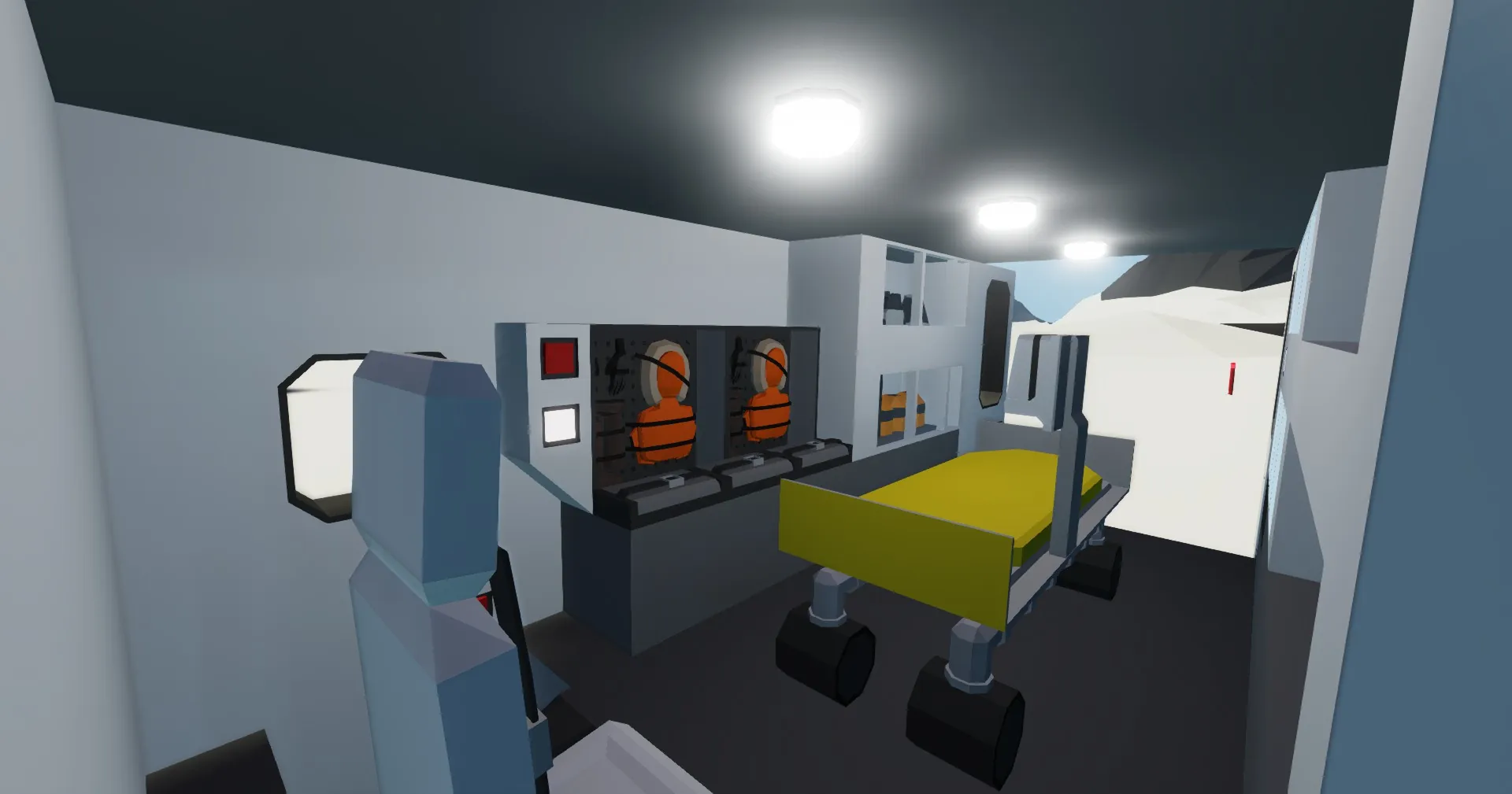 Built on the Chevy Silverado 3500 chassis by lexignatov, this ambulance is equipped with lots of equipment, lights, and general badassery. It was designed to go hand in hand with my arctic fire engine built on the MALV arctic truck chassis. If the lettering on the side didn't give it away, I figured they'd be stationed at the arctic airstrip, and would run calls all around the arctic as needed.
