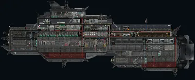 内部配置:前半段有大量生活区域,船长室下方内置大型温室能够满足水下自给需求,水下的移动要塞。