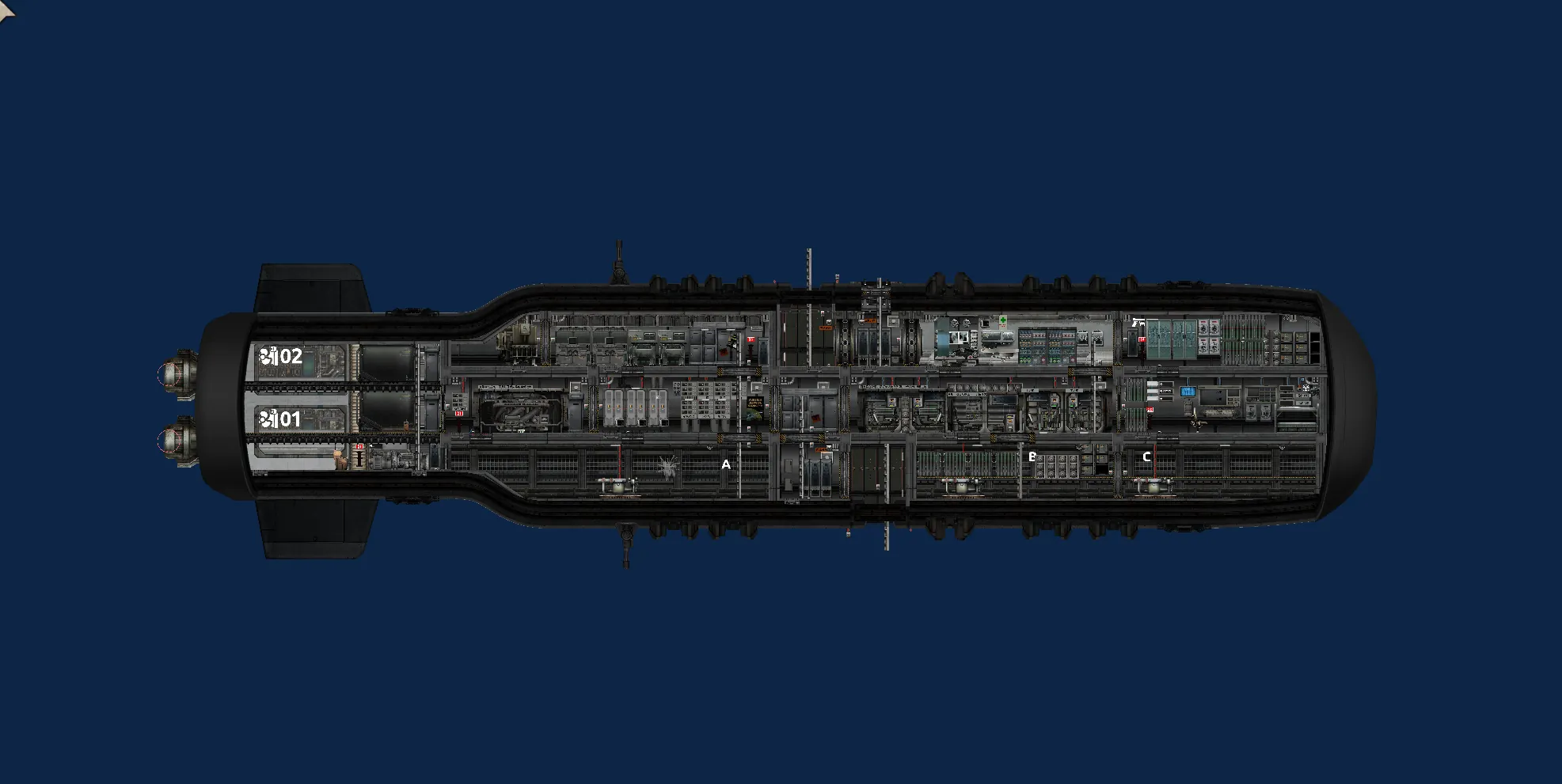 有双层重型船壳,重型内墙,大量使用重型舱门,使用核聚变反应堆来供电。双引擎下机动性也不高。