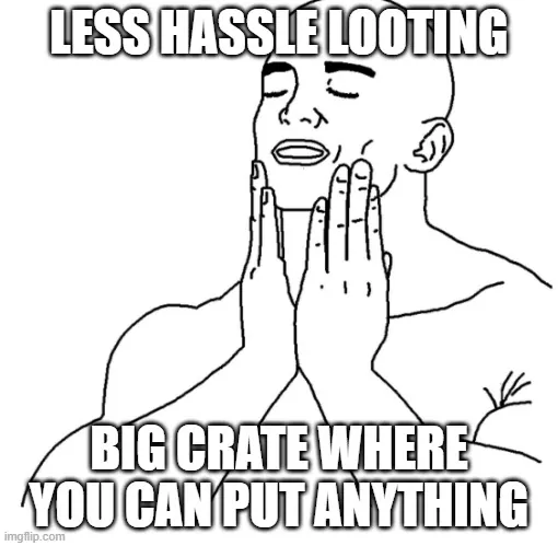 Is looting too tedious? This modified metal crate can carry previosly unstorable items like diving gears, turret ammos, railgun shells, scooters, etc. Also expanded to 49 slots (from 20).
