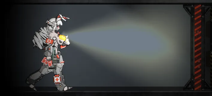 医疗型机娘,可以快速转移失去意识的伤员,配备健康监测系统,插入雷素电池后大幅提高移动速度,并激活纳米治疗喷雾,医疗系统使其无法直接使用重型武器