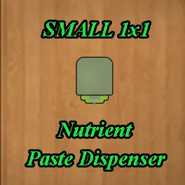 Changes Nutrient Paste Dispensers to be 1x1. Can be loaded in and out of existing saves. Keep in mind if you remove this mod, the dispensers in your save will swell back up to their normal 3x3 size.